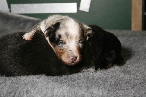 In deze fase levert het leeftijdsverschil van drie dagen voor de drieling van Sassefras nog een aanzienlijke voorsprong op. Rémy's oogjes beginnen nu net een beetje open te gaan en ze vindt haar neefje en nichtjes voornamelijk erg prettig om lekker warm tegenaan te liggen.